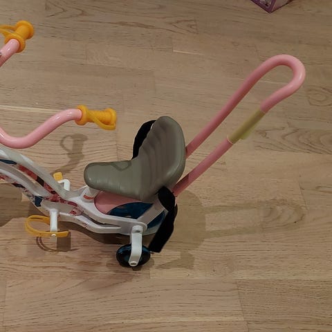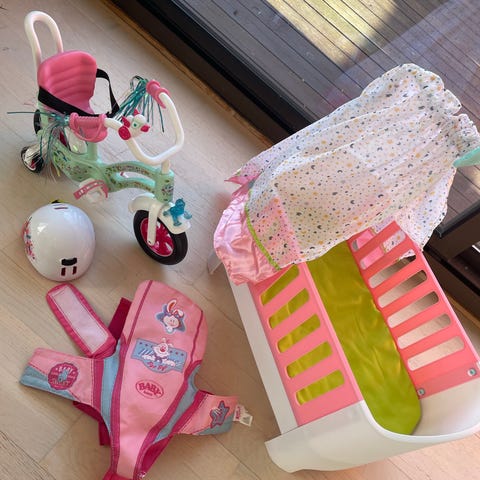 dukkesykkel kr 200 med Baby Born sykkelhjelm kr 150