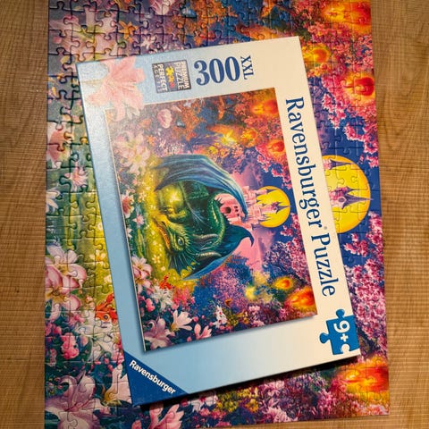 Selger nesten ny puslespill- puslet bare en gang. Har klart å miste en brikke.