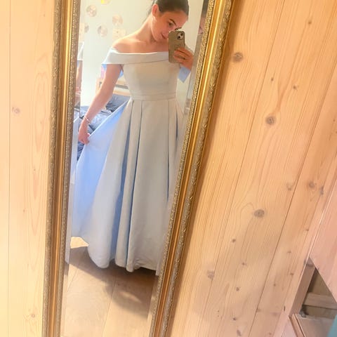 Enkel lyselilla ballkjole selges. Kjolen er kun brukt en gang. Den ble kjøpt for 2500kr hos Orchilde i Oslo.
