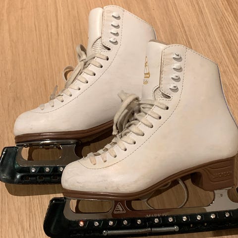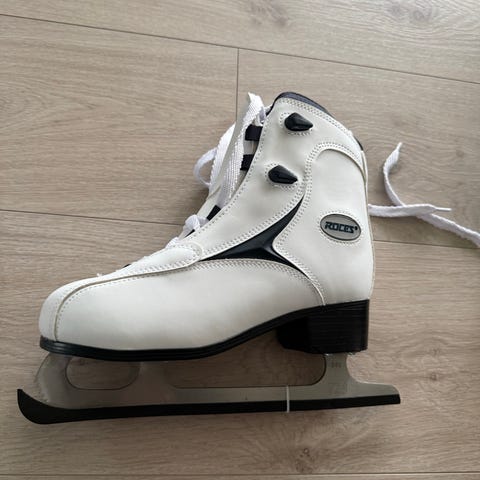 Skøytene er pent brukte og ca 55år gamle .. veldig god kvalitet.. de er brukt i konkuranser og er stødige på foten.. må prøves på..