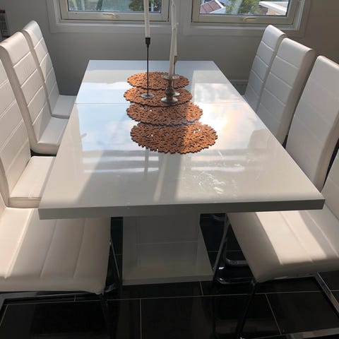 Forlengningsbar spisebord i hvit høyglans(uten stolene)