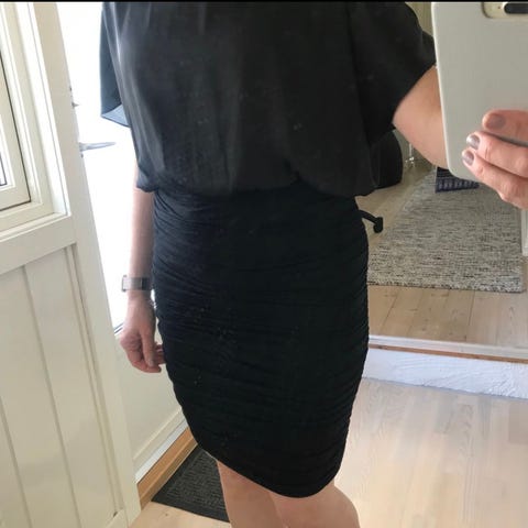 Kjole fra Vila, brukt én gang. Mørkeblå overdel, og svart underdel med små perler. Str M