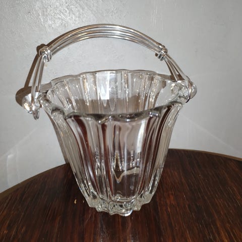 Et nydelig eldre fruktfat i glass, trolig fra 50/60 tallet, 20 cm i diameter, ca 5.5 cm høyt. Noen luftbobler i bunnen, litt bruksspor ( svært lite).