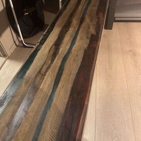 Pent brukt nydelig marmorbord i grønt fra Møbelringen vurderes solgt.