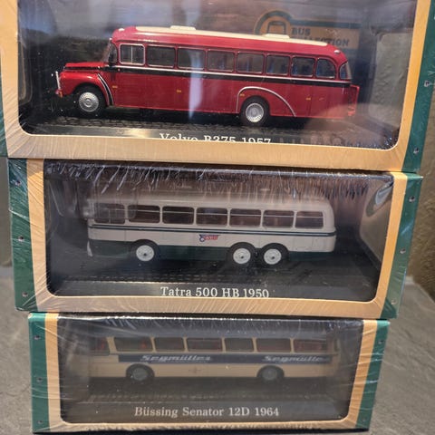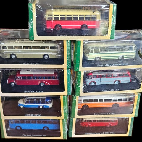 Atlas Edition diverse bussmodeller, samtlige i perfekt stand men mangler original pappeske, kr. 150,- pr stk. Kr. 100,- pr stk ved kjøp av 3 (eller fler. Kjøper betaler porto.