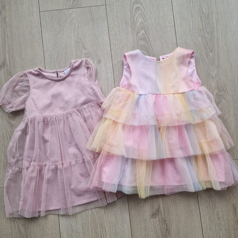 Selger nye kjoler med lapper på, i str 92 og 104.