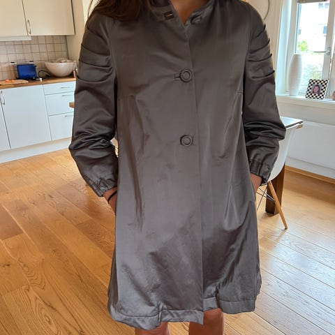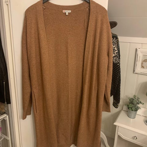 Lang lys rosa/nude jakke/cardigan i angora og viskose fra Bruuns Bazar. Pent brukt, ingen feil eller skader.