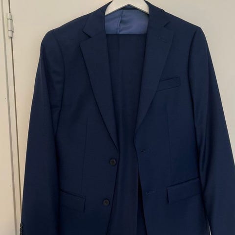 Mørk blå dress i ullblanding, fra Dressmann
