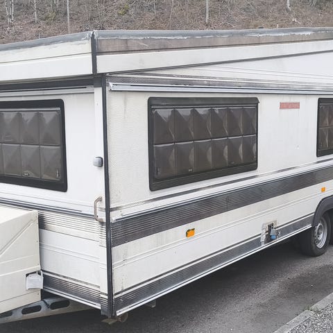 Komplett sett med front og sidevegger, samt caravanstore markise.