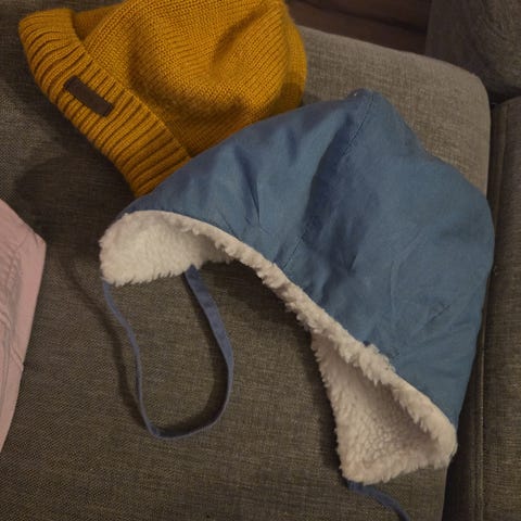Hjemmesydde luer i ulike farger, med forskjellig refleksmotiv