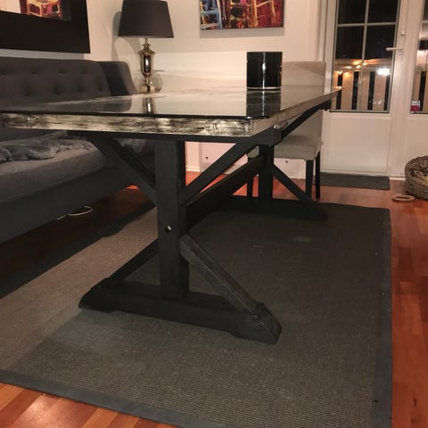 Vi vurderer å selge vårt kjære spisebord med nydelige former og herlig patina.