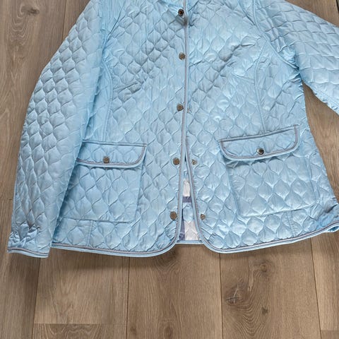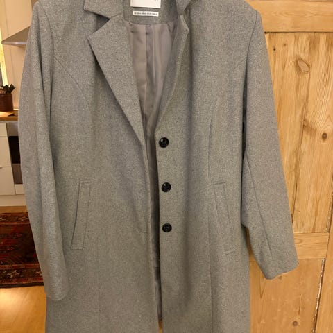Stilig og kul jakke/ kåpe. Pent brukt, fant bare en liten flekk, har ikke prøvd å fjerne den. Med lommer. Str xs, men pga vid modell kan brukes opp til str L.