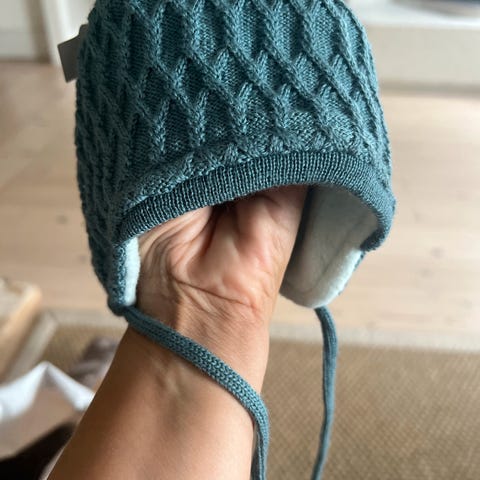 Strikket lue og votter i herlige farger og mønster