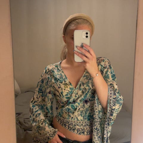 Genseren er kjøpt i Tyskland og har noen fine, kreative detaljer. Passer til deg som har XS og S i størrelse. Nypris var 600 nok.