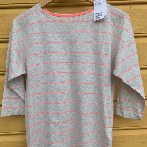 Ny kort off shoulder-topp for jenter i fint ribbestrikket kvalitet selges. Str. 158/164, Aldri brukt/prøvd.
