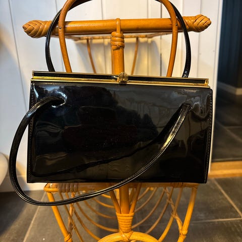 Selger en lakk veske fra Lyche i Drammen. Fra 50-60 tallet. Veldig lite bruksmerker. Kan sendes.