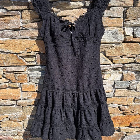 Catherine Malandrino - Black Silk/Cotton «Baby Doll» type top with Lace , tie bow in back and side Zipper.