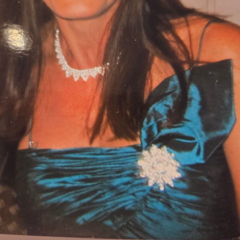 Ubrukt! Nydelig lang festkjole vurderes, Kjolen er litt liten i str. Den er str 38 og størrelsen tilsvarer 36.