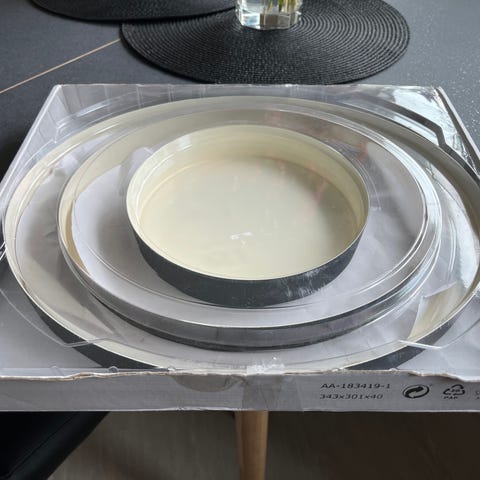 Hvitt pyntefat, av metall, selges. Mener å huske det sto IKEA under. Selges som det er. Se bilder.