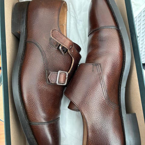 Brune sko fra Crockett&Jones. Strl 6,5 i UK, hvilket vel tilsvarer 40-40,5. Disse ble for små for meg som normalt er 41. Aldri brukt utendørs,