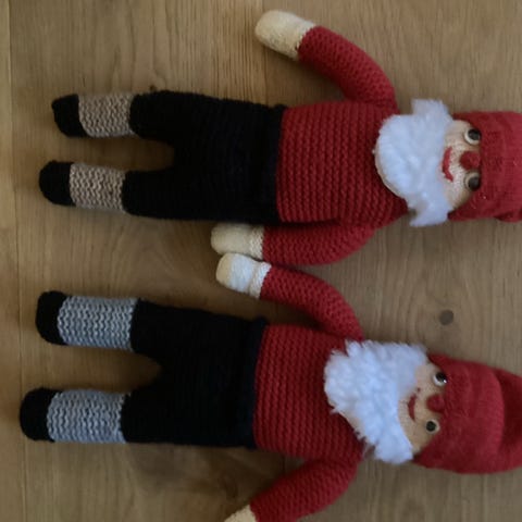 Håndstrikket og helt nye. Høyde 20 cm. Jeg sender gjerne. Porto på kr 58,- kommer i tillegg.
