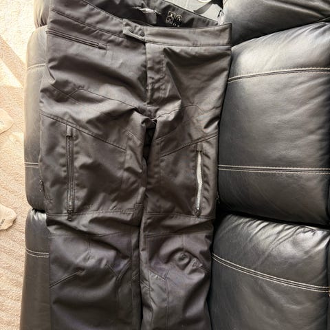 En svart vinterbukse med seler selges for kun 250,-