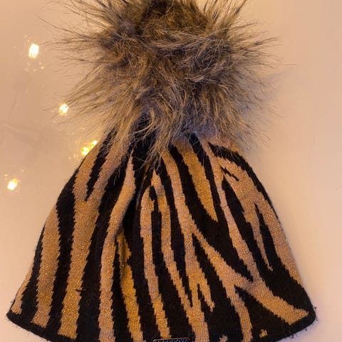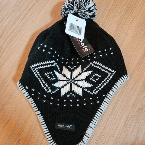 Pen kul moderne svart vinter lue med logo + refleks i midten