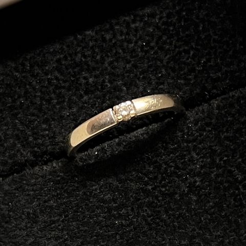 Selger Alliansering i hvitt gull 0,05 ct diamant størrelse 54 grunnet brudd med en ex. Kan finpusses for en 500 lapp eller selv slik at den blir som ny igjen.