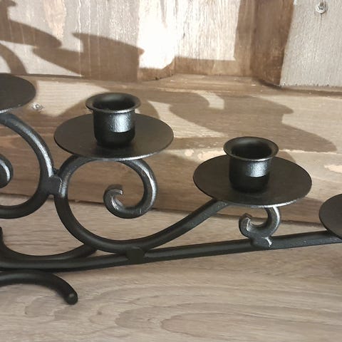 En sjarmerende lysestake i sort metall som passer til vanlige stearinlys.