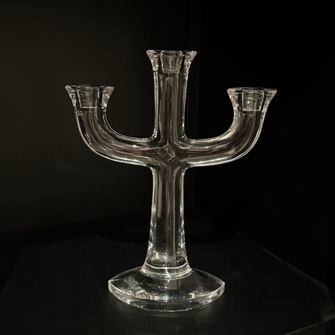 Trearmet lysestake i klart glass, modell Trio
