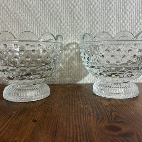 Koselige konfektskåler/dessertskåler i ulike farger og stiler. Alle stettskålene er hele og i god stand.