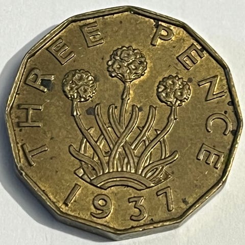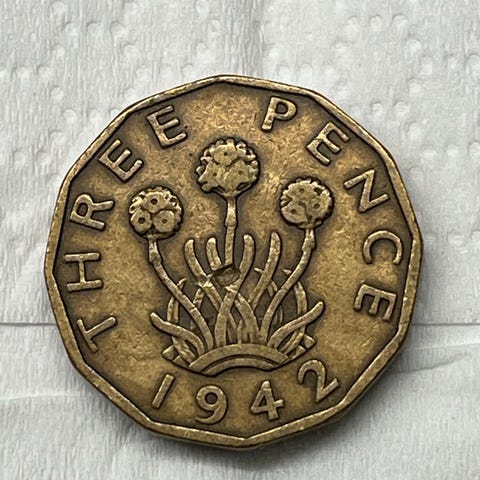 England three pence 1944 mynt