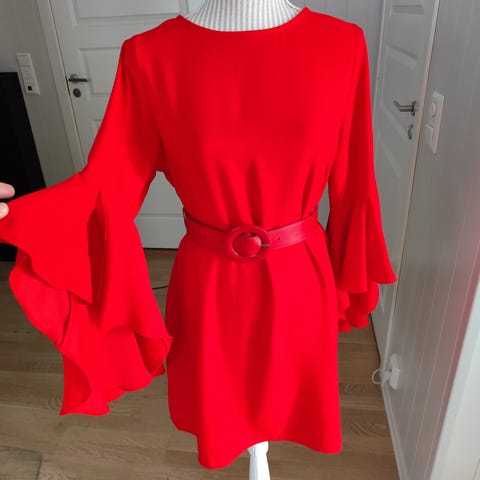 Lang kjole med høy splitt og shorts under. Fremstår som ny.