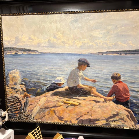 God stand. Mål med ramme 131x73. Signert. Må hentes.