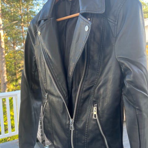 Ubrukt Harley jakke, skinn og stoff. Glidelås nederst på ermene, innapålomme, ermene kan tas av slik at det bli vest