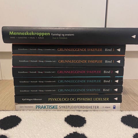 Pent og lite brukte pensumbøker til sykepleie selges. Kan hentes i Arna ved togstasjonen eller sendes mot at kjøper betaler frakt. Bøker som er fjernet fra prislisten er solgt.