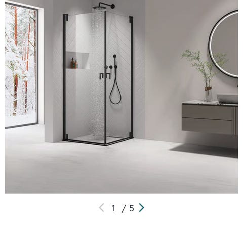 Badnor Solido dusjhjørne er tilgjenglig i størrelsene 120x90cm og 140x90cm firkantet, samt 90x90cm pentagon.