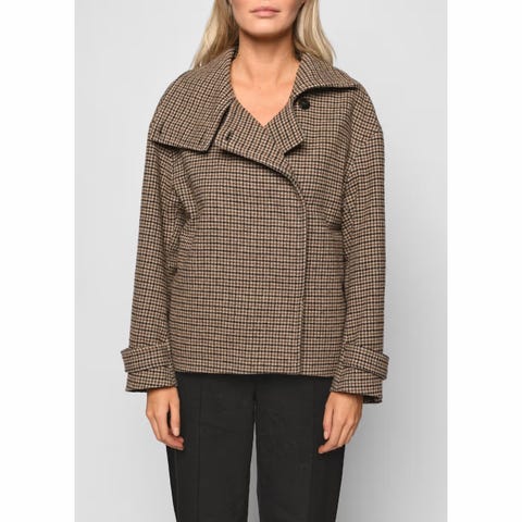 En overdimensjonert kåpe med asymmetrisk knappelukking foran og omslagseffekt i halslinningen. Det er lommer i sidene og den er helfôret. Kåpen har en avtakbar, vattert krage for ekstra varme.