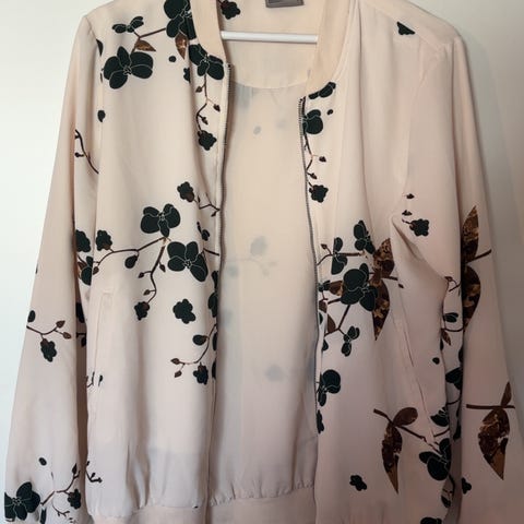 Rosa jakke i str L, selges for 150,- kun tatt av lappen, aldri brukt. Lett foret.