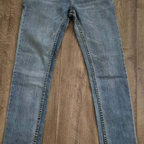 Levis olabukse i klassisk blå vask, veldig fin modell. Denne er kun tatt av lappen på og prøvd. Jeg kjøpte den til sønnen min, men den virker mer som jentemodell så den har ikke blitt brukt. Står str 12, jeg vil si den passer 10 til 12.