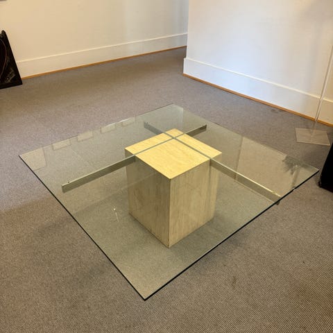 Salong bord med glass og stein.