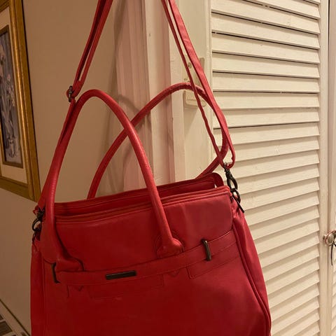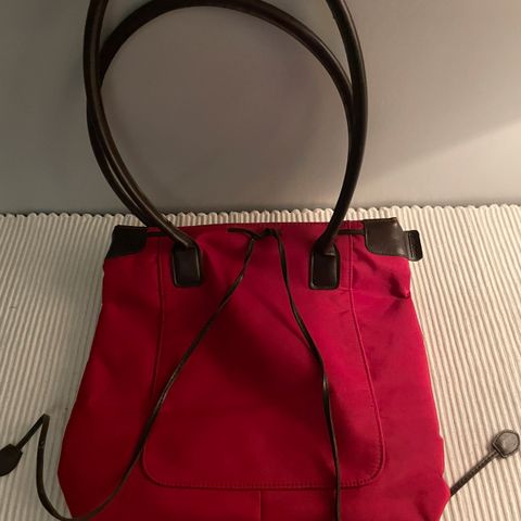 Ubrukt skulderveske i tykt nylonaktig stoff. Mange rom utenpå og inni med glidelås.Avtagbar skuldereim og trykknapper på sidene for regulere størrelse.Det første bildet er riktig farge tatt ute i dagslys. Mål ca 48×32 . Selges for 200 kr og 76 kr i frakt med Norgespakke . , Mvh Eli Granås