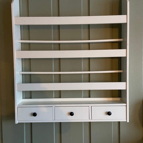 Vi lager hyller på bestilling. 20-40 cm dype. 500 kroner pr meter ferdig pusset. Behandling, utskjæring og oppheng kommer i tillegg. Vi tar også på oss montering mot tillegg i pris.