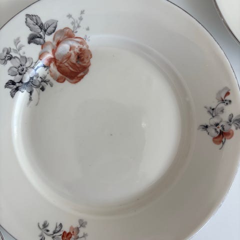 2 koselige asjetter frå Figgjo Flint. 17,5 cm i diameter og pent brukt! Normal bruksslitasje etter mange år i ei hylle, dekor og glasur er intakt og klar til eit nytt kakeselskap! NB! Veit du kva dekoren heiter så gi meg gjerne eit pip!