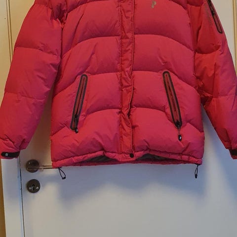 Jakken har en rett kant i front og en buet form bak, vennligst se bilder.