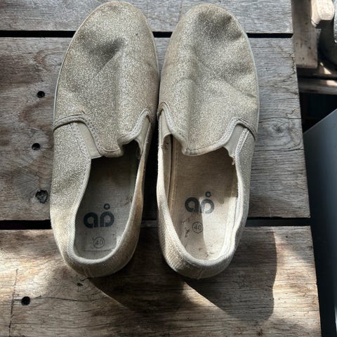 Flekk foran på høyre sko, se bildet.
