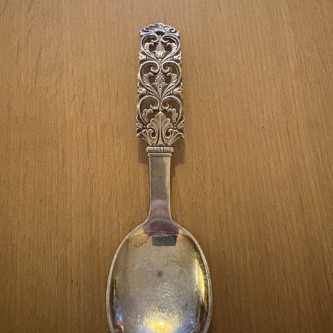 "Kloster" sølvskje til salgs.