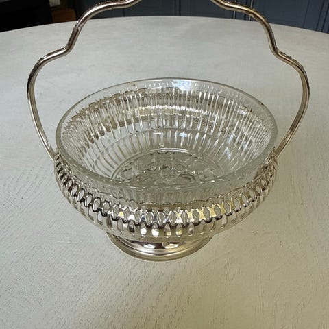 Retro dessertbolle, glassbolle i sølvplett (?) selges