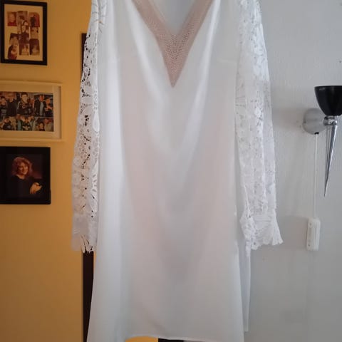 Nydelig hvit langermet blondekjole, glidelås bak. Ny pris 499kr. Kan hentes el jeg sender