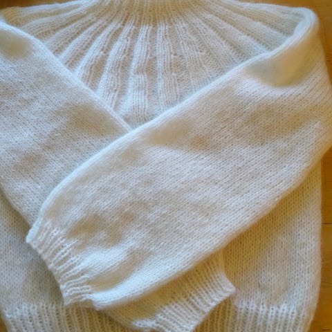 Vakker håndstrikket genser laget av ekte ull.